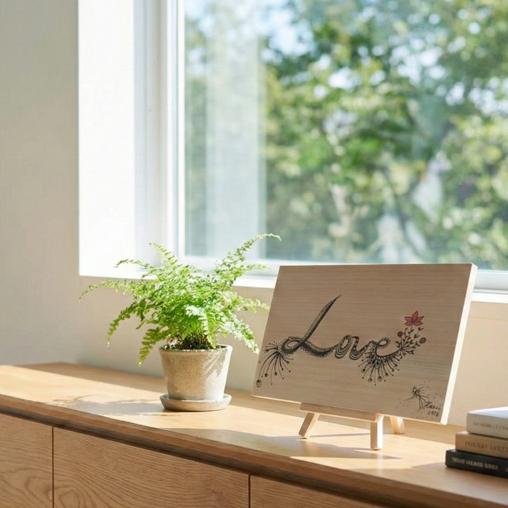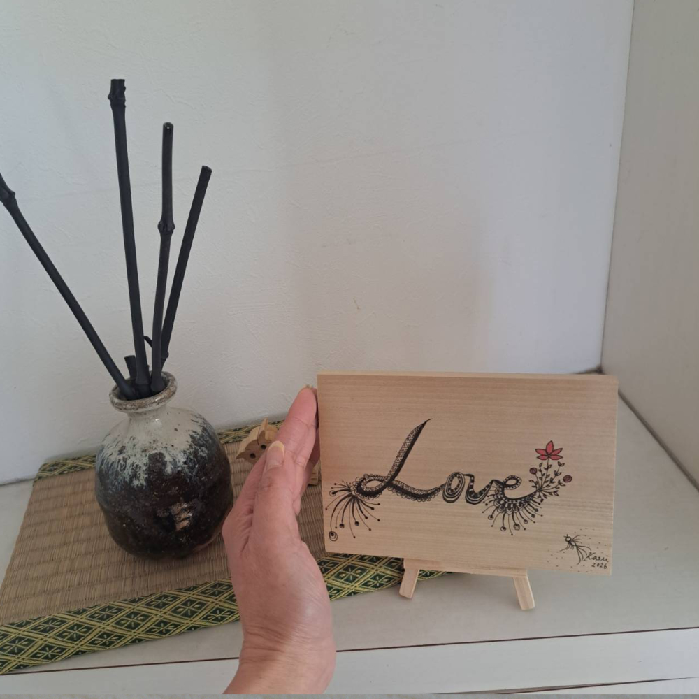 家族へ、恋人へ、そして自分自身へ。愛がやさしく巡る世界であってほしい――そんな祈りを込め、心を静めて一筆一筆と向き合いながら制作しました。 For family, for a loved one, and for oneself.